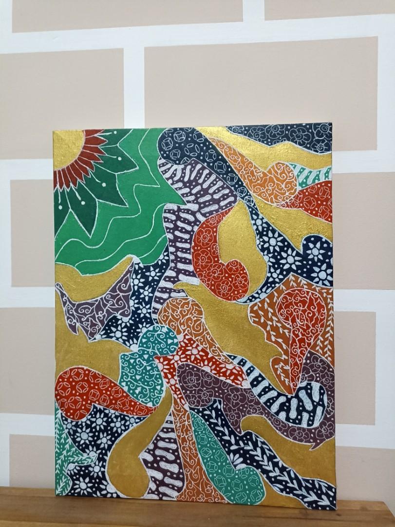Lukisan Batik Kanvas Acrylic Painted 30 X 40 Cm Desain Kerajinan Tangan Karya Seni Di Carousell